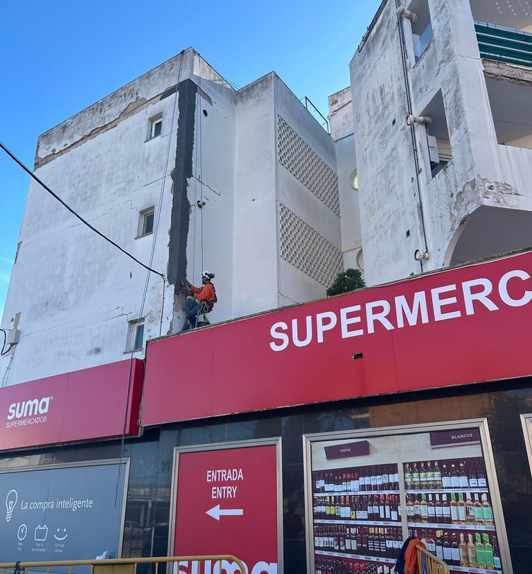 Reparamos y mantenemos fachadas con seguridad y calidad garantizadas, sin uso de andamios para mayor comodidad y rapidez en cada proyecto.